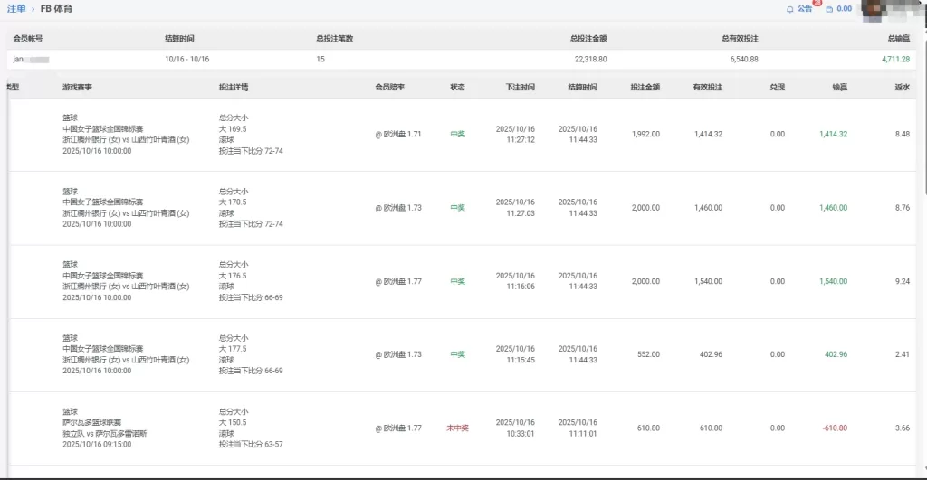 • FB 体育 会員jan**** 足球 单日盈利26522025年11月28日
