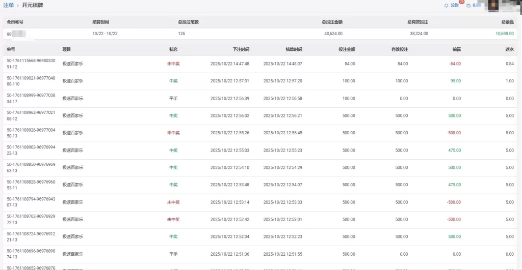 开元棋牌会員gg**** 极速百家 单日盈利10698