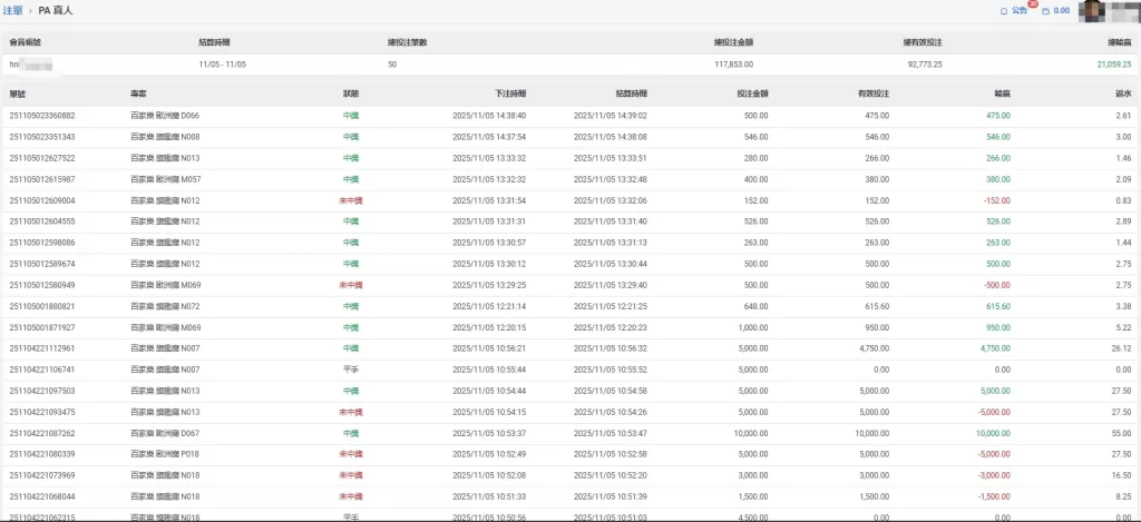 • 熊猫体育 会員wing**** 足球 单日虧損18472025年11月27日