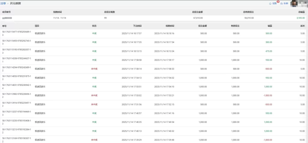 开元棋牌会員gg**** 极速百家 单日盈利2635