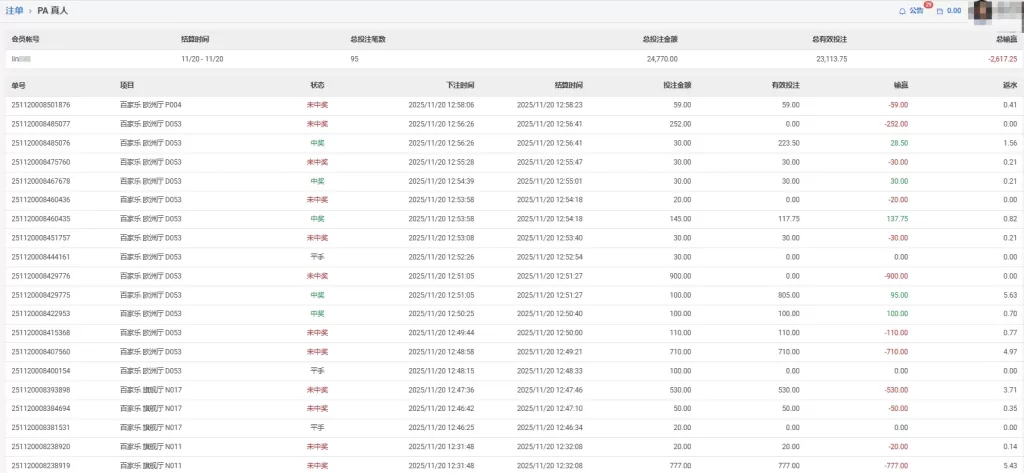 开元棋牌会員gg**** 极速百家 单日虧損1063
