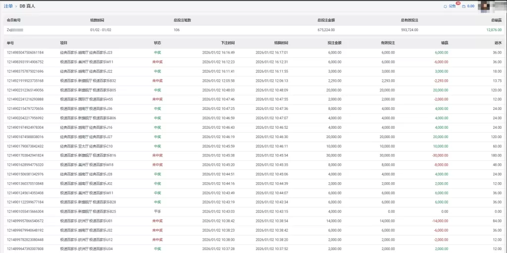 • PA 真人会員hnba****百家 单日盈利346442026年1月6日