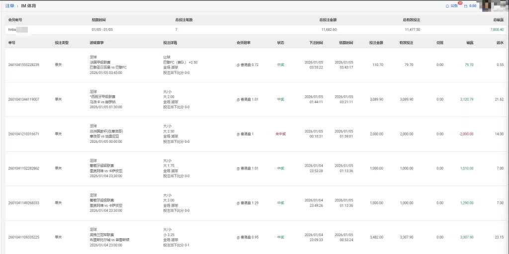 • IM 体育 会員janu**** 籃求 单日盈利30482026年1月7日
