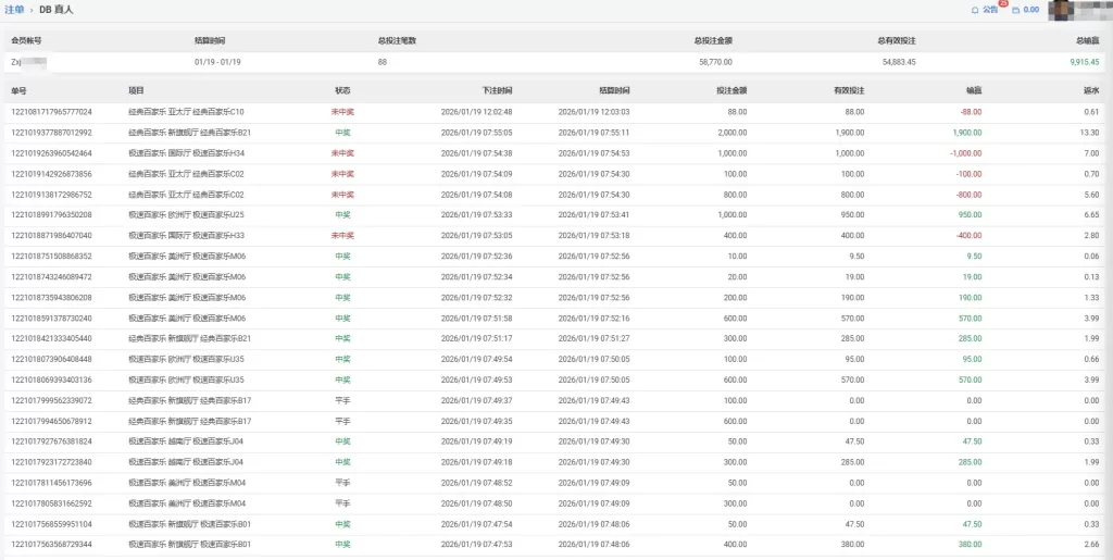 DB 真人 会員Zxj**** 百家 单日盈利9915