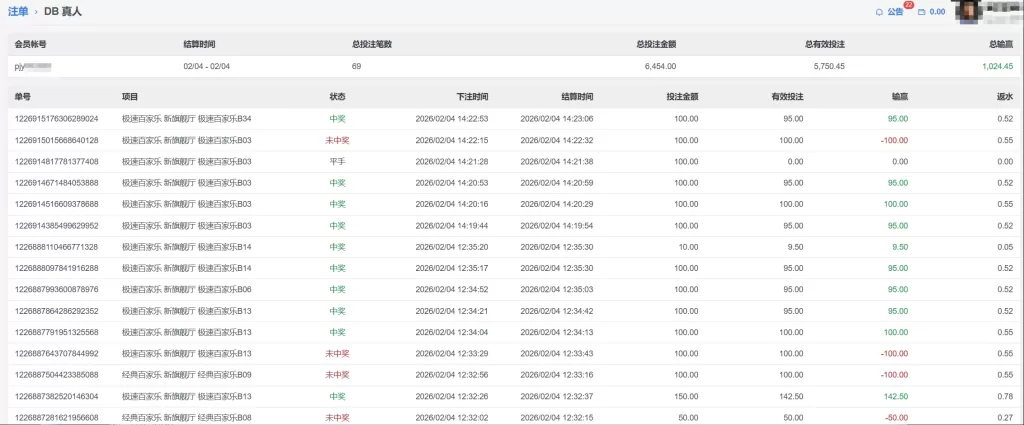 DB 真人 会員hnba**** 百家 单日盈利2340