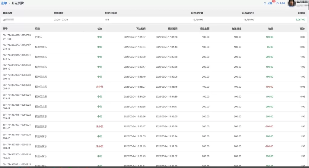 • BG 真人 会員w**** 百家 单日盈利15002026年3月20日